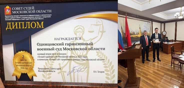 | 2-е место Одинцовского ГВС в номинации Лучший судебный сайт 2024 года среди гарнизонных военных судов | версия для печати |